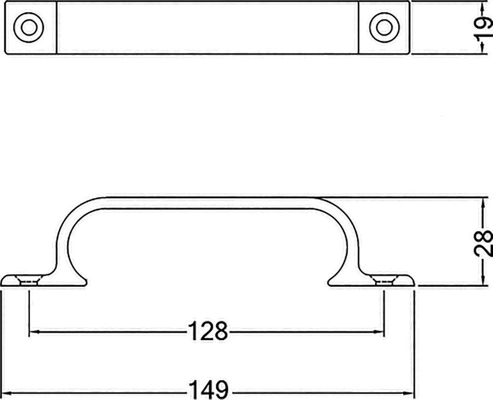 Handgriff Ausladung 28 mm Länge 149 mm Breite 19 mm Aluminium silberfarbig eloxiert Anzahl Löcher 2, Ø 4,3 mm