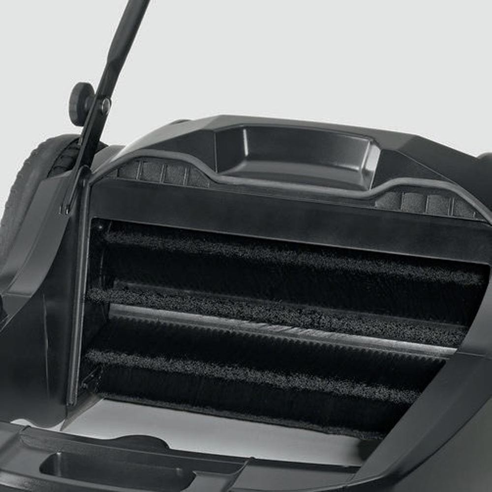 nahezu staubfreies Kehren durch kontrollierte Luftführung und Filterung · Seitenbesen wegklappbar · Hauptkehrwalze höhenverstellbar und somit Anpassung an verschiedene Bodenarten · beidseitiger Antrieb der Hauptkehrwalze · Schubbügel klappbar und in 3 verschiedenen Höhen einstellbar · Serienmäßig mit 2 Seitenbesen