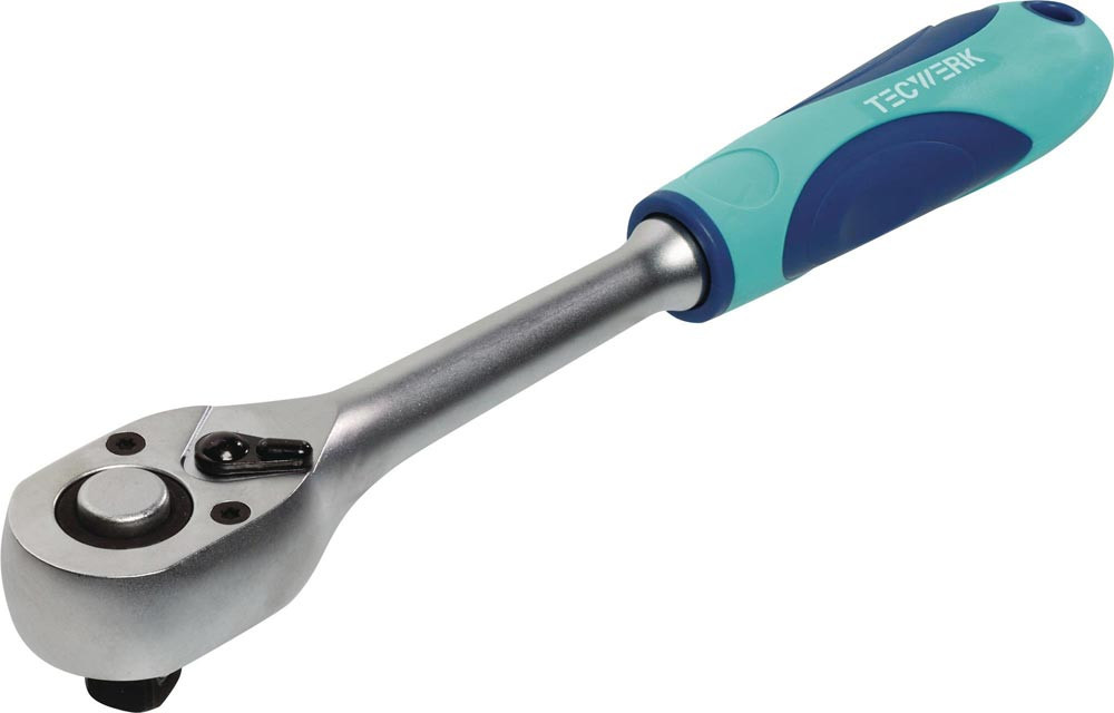 10 mm (3/8 ″)-Vierkantantrieb · mit 2-Komponenten-Griff · CV-Stahl · matt verchromt · Nussverriegelungsfunktion mit Druckknopfauslösung · Rückschwenkwinkel 5°