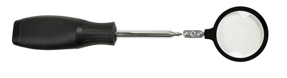 Inspektionswerkzeug mit 5-fach-Vergrößerungslupe und Teleskopgriff (Ausziehbar 70-500 mm) mit großen, dreieckförmigen Griffen im Soft-Touch Design für Komfort und Griffigkeit. Mit einer Gesamtlängebis maximal 720 mm bietet es viele Einsatzmöglichkeiten. Anti-Twist-Teleskop.
