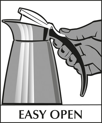 ∙ Leichtes und bequemes Öffnen des Deckels: Einfacher Druck auf den Deckel genügt ∙ Edelstahlkolben ∙ Easy-Open-Verschluss