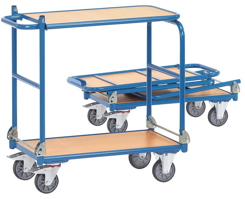 Klappwagen, 2 Ladeflächen LxB 720x450 mm, Außenmaße LxBxH 900x470x900 mm, Traglast 250 kg, RAL 5007 brillantblau