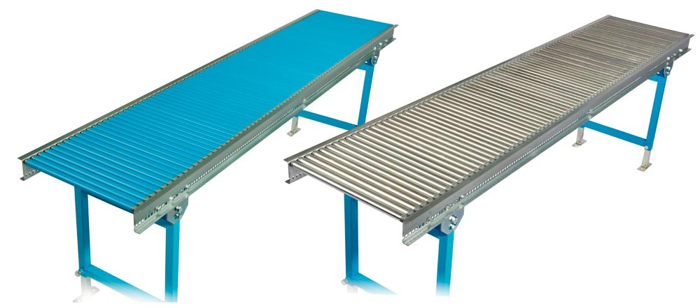 ∙ Rahmengerüst aus U-Profilen 20/70/20 ∙ Verzinkt ∙ Tragrollen wahlweise Stahlrohr verzinkt oder Kunststoffrohr in den Durchmessern 20 und 30 mm ∙ Kurven-
