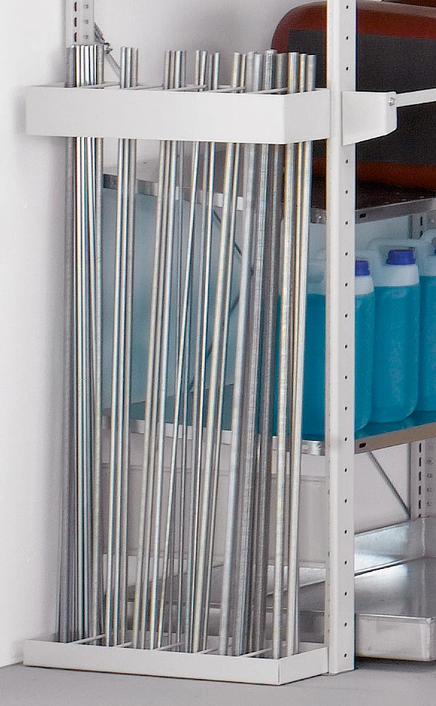 Kleinteile-Regalmodul 1, Anbaufeld, BxTxH 1000x500x2000 mm, 4 Böden, 1 Gew.st.halt., 1 Schrägb., 12 Trennbügel, 1 Verr.stange Öllager, 1 Auffangw. E876919