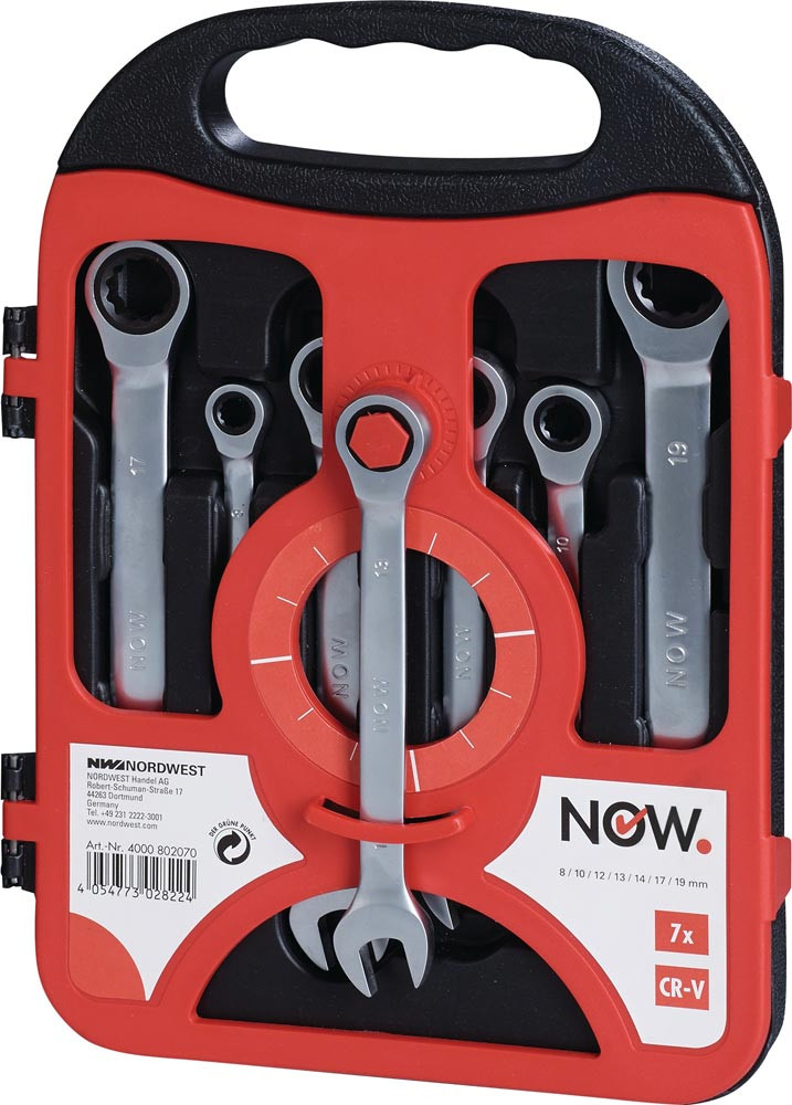 Knarrenringmaulschlüsselsatz 7-teilig Schlüsselweiten 8-19 mm gerade