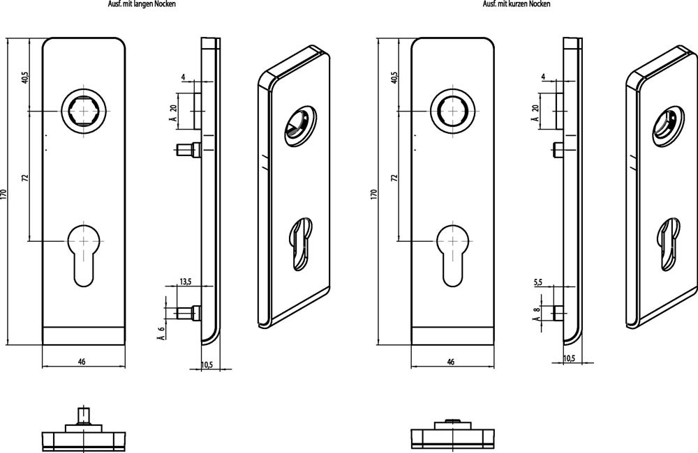 Knopfkurzschild OGRO XEA 3020/7060 ER Edelstahl ER Entfernung 72 mm PZ