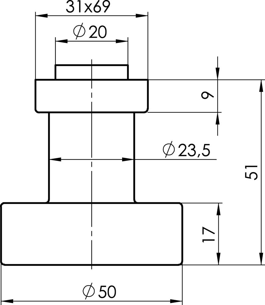 feststehender, runder, Flachknopf 3020 · Ausführung gerade · fest auf Kurzschild 7060 im XEA Design · für Vollblatt-Türen · OGRO-Baukastensystem
