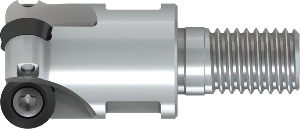Plan-Kopierfräser mit doppelt positiver Geometrie welche 3 aus RD.. 1003MOT oder RDHT 1003MO-FA einseitige Wendeschneidplatte · Schneiddurchmesser bis maximal 25mm mit M12 Gewindeschaft für standardisierte modulare Trägerwerkzeuge · 32mm funktional und 54mm Einsatzlänge · durchgehende Kühlung zum Planfräsen · Kopierfräsen · Rampen · progressiven Tauchfräsen und helikalen Fräsen mit einer maximalen Schnitttiefe von 2.5mm