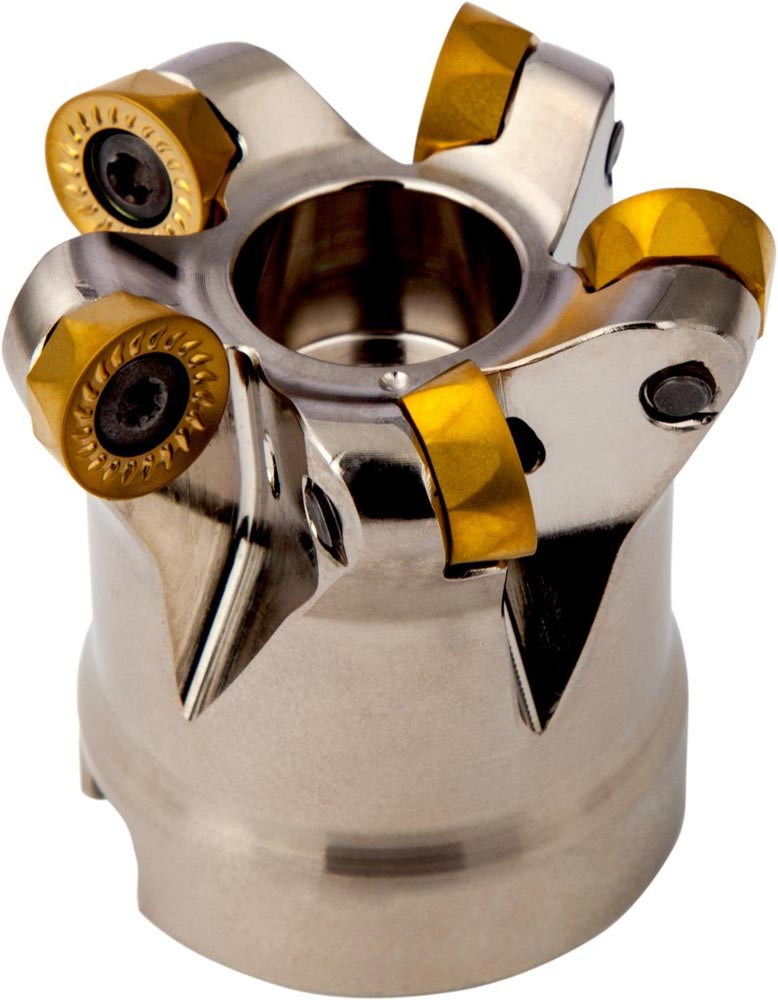 Kopier-Planfräser mit doppelt negativer Geometrie zum spannen von 5 Stück RCMT 10T3MO.. einseitigen Wendeschneidplatten · Schnittdurchmesser 40mm mit 16mm Verbindungsbohrung gemäß DIN 8030-A · 40mm Überstandslänge · Kühlkanalbohrung zum Planfräsen · Kopierfräsen · Rampen · Helikalen Fräsen und progressiven Eintauchen mit einer maximalen Schnitttiefe von 5.0mm