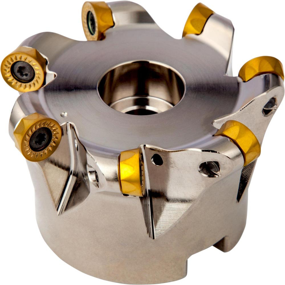 Kopier-Planfräser mit doppelt negativer Geometrie zum spannen von 7 Stück RCMT 10T3MO.. einseitigen Wendeschneidplatten · Schnittdurchmesser 63mm mit 22mm Verbindungsbohrung gemäß DIN 8030-A · 40mm Überstandslänge · Kühlkanalbohrung zum Planfräsen · Kopierfräsen · Rampen · Helikalen Fräsen und progressiven Eintauchen mit einer maximalen Schnitttiefe von 5.0mm