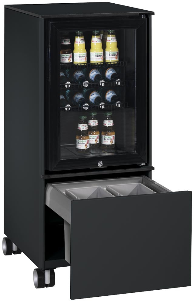 Kühlschrank-Caddy, BxTxH 500x600x1157 mm, Kühlschrank, Abfallsammler (1x18 l, 2x8,5 l), RAL 7021 schwarzgrau E1987094
