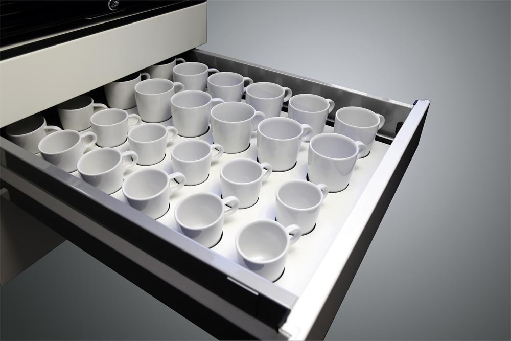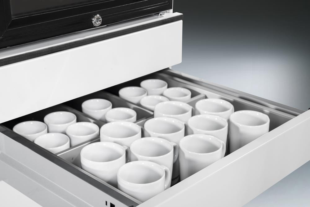 · 1 Schublade mit variabler Einrichtung für Tassen und Gläser