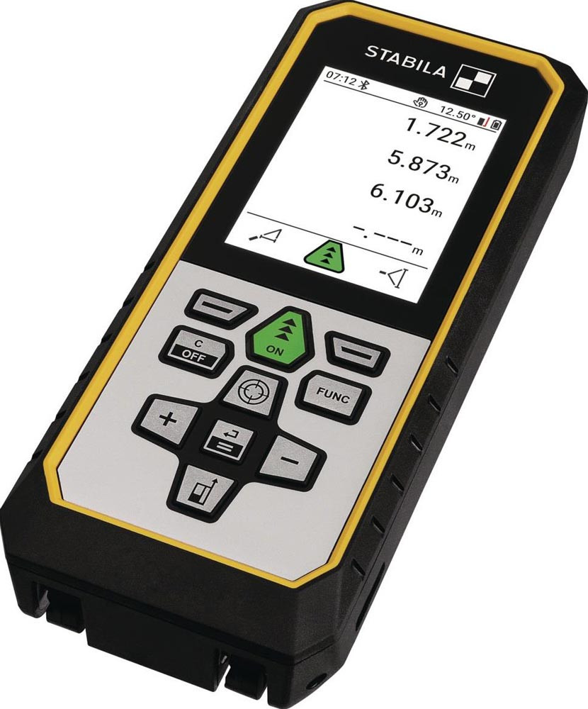 GESTURE CONTROL: kontaktloses Auslösen der Messung · Bluetooth® 5.0 zum schnellen Übertragen der Messdaten an Smartphone, Tablet oder PC · STABILA Measures II App mit SMART SKETCH Funktion erstellt automatisch Raumskizzen · ermöglicht ein direktes Übertragen der Messwerte in individuelle Vorlagen, z. B. in Excel · umfangreiches Funktionspaket mit 17 Funktionen: Fläche, Volumen, Neigung, indirekte Höhen- und Entfernungsmessung, etc. · leistungsstarker Li-Ionen-Akku für bis zu 5.000 Messungen · Gehäuse mit Softgrip-Mantel · 1/4“-Gewinde