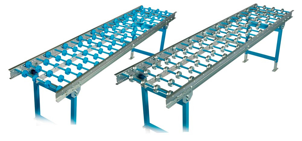 Zum Transport von Stückgütern mit festem, glattem Boden durch Gefälle. Neigung ca. 2-5 % je nach Beschaffenheit und Gewicht des Fördergutes. Das Fördergut sollte mindestens auf 3 Röllchenachsen aufliegen.