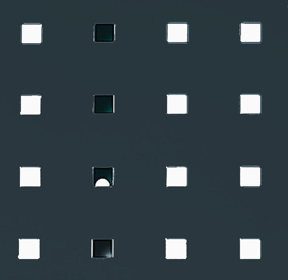 symmetrisch perforiert · aus 0,9 mm starkem Stahlblech · Lochabstand 38,1 mm · Lochgröße 9,2 x 9,2 mm · besonders stabil durch an der Rückseite angebrachte Versteifungen · Oberfläche pulverbeschichtet · Arretierung mit Kunststoffclip: Montage des Zubehörs ohne Werkzeuge