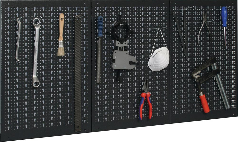 aus stabilem Stahlblech · kratzfeste Pulverbeschichtung · bestehend aus 3 Lochwandplatten à 40 cm · mit Schlüssel-Lochung · anthrazit
