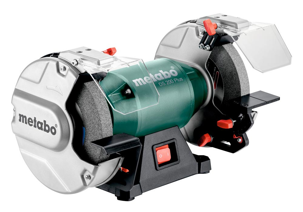 Lieferumfang: Normalkorund-Schleifscheiben 36 P und 60 N, Funkenschutzgläser, Werkstückauflage und ein Sechskantschlüssel