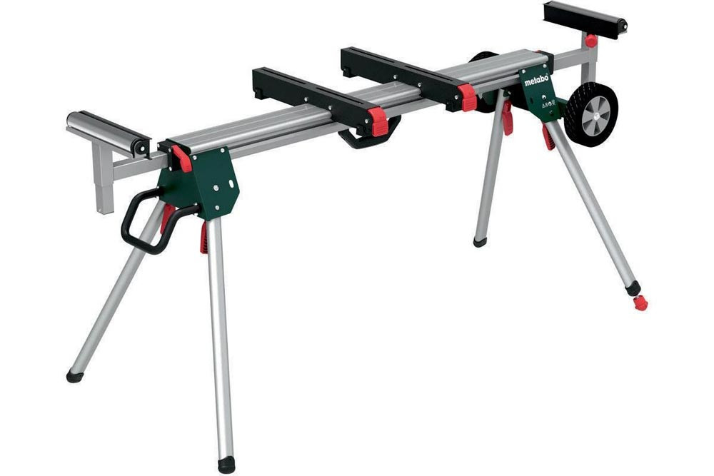 leichtes und robustes Kappsägen-Untergestell mit Trolley-Funktion für den mobilen Einsatz auch mit montierter Säge · schnell einsatzbereit durch arretierbare Klappbeine und Justiermöglichkeit für sicheren Stand · ausziehbare Werkstückauflagen mit Rollen und klappbarem Anschlag für exakte Serienschnitte · Maschinenträger (werkzeuglos montierbar) auch geeignet für alle gängigen Kappsägen · inklusive 1 Paar Maschinenträger (629008000) · max. Gewichtsbelastung im Mittelteil: 250 kg