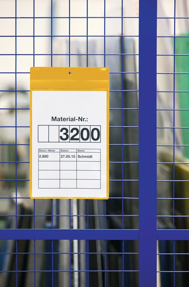 ∙ Starke Haftkraft durch zwei eingeschweißte Neodym-Magnete ∙ Anwendung an metallischen Oberflächen wie Gitterboxen, Rohren und Transportbehältern ∙ Farbige Rückenfolie und transparente Vorderfolie aus strapazierfähigem Polypropylen ∙ Geeignet für den Außeneinsatz durch Staub- und Regenschutzklappe ∙ Scannertauglich und dokumentenecht ∙ Schneller Austausch der Einsteckschilder ∙ VE 10 Stück · Mindestabnahme 2 VE