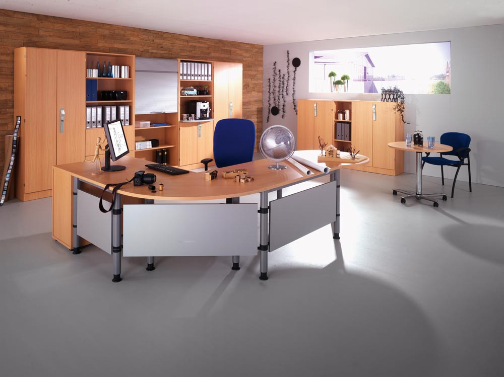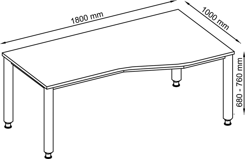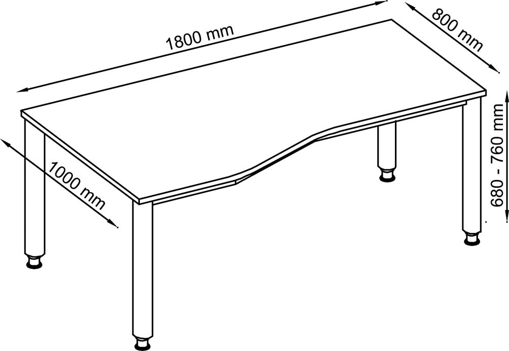PC-Schreibtisch, BxTxH 1800x800-1000x685-810 mm, höhenverstellbar, 4-Fuß-Gestell, Platten-/Gestellfarbe buche/silber E1981070