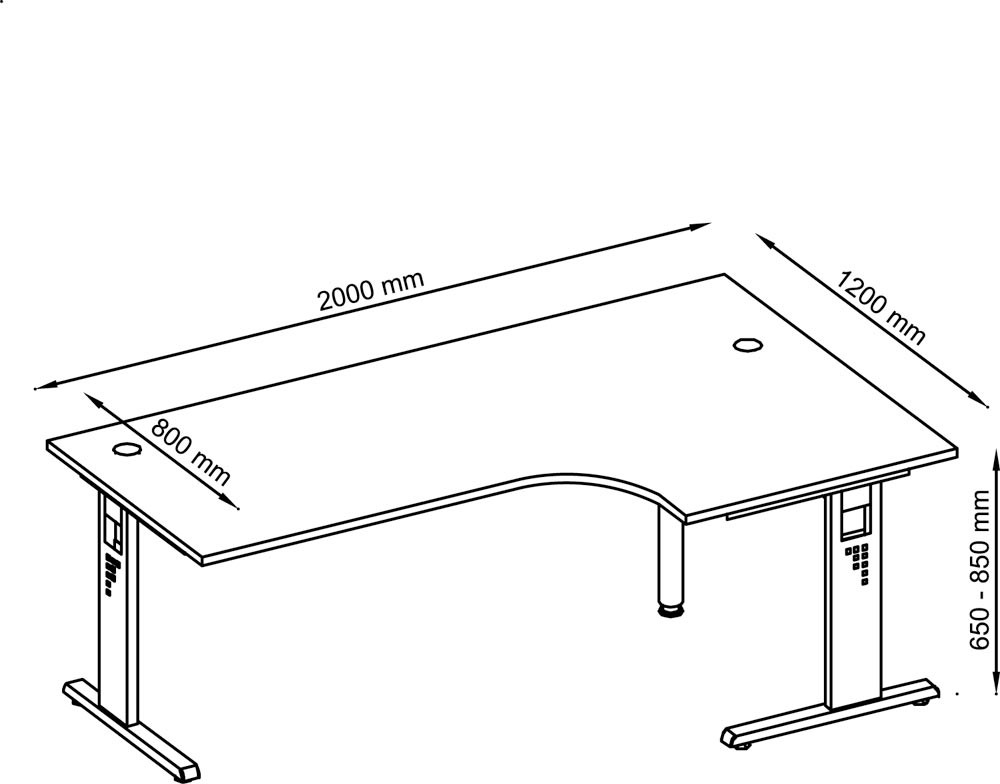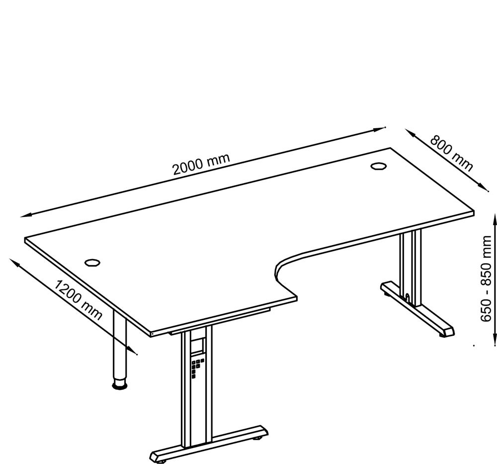 PC-Schreibtisch, BxTxH 2000x800-1200x650-850 mm, höhenverstellbar, C-Fuß-Gestell, Platte weiß
