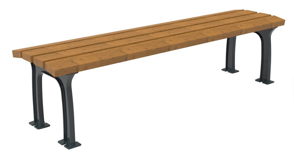 Parkbank ohne Rückenlehne, mit Bambus Savanna Belattung, Füße mobil aus Aluminiumguss, BxTxH 1770x466x458 mm E6488916