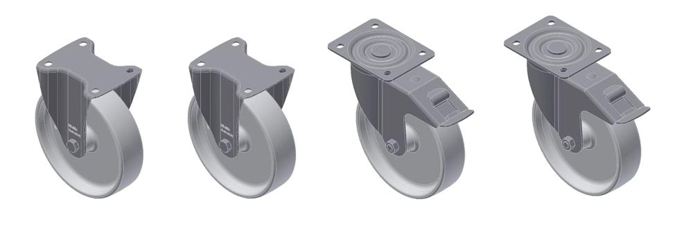 · 2 Lenkrollen mit Feststeller und 2 Bockrollen · Raddurchmesser 160 mm · Bauhöhe 200 mm · Traglast bis 1350 kg