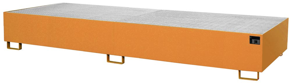 Regalwanne f. Trägerlänge 2200 mm, m. verz. Gitterrost, BxTxH 2150x1300x225 mm, Volumen 240 l, RAL 2000 E1987195
