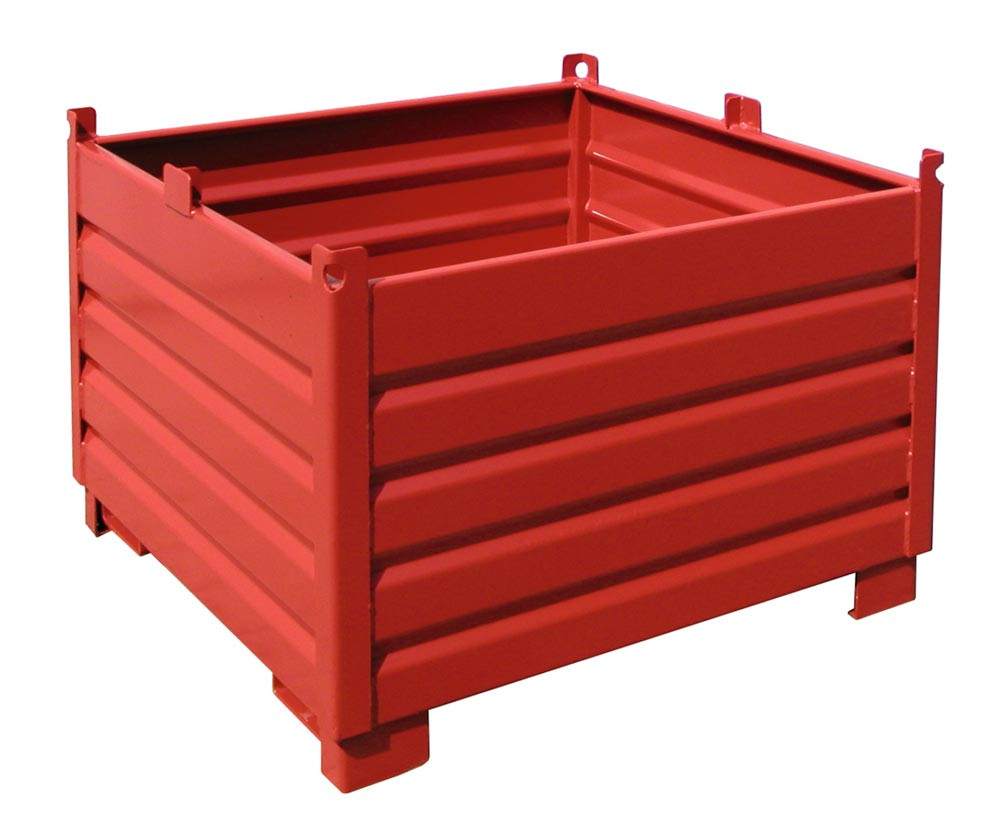 Sammelbehälter, Stahl, Traglast 1000 kg, Volumen 1,0 cbm, LxBxH 1200x1200x850 mm, lackiert RAL 3000 feuerrot E865451