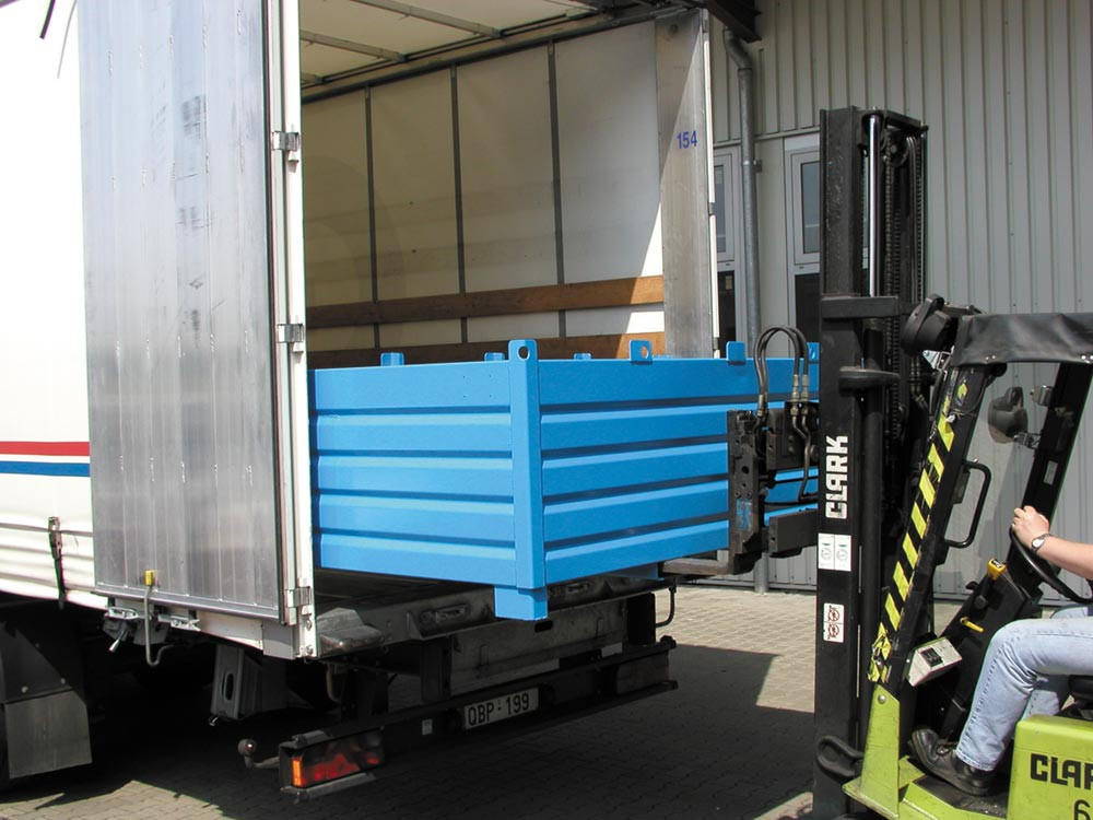 ∙ Stapelbare, robuste Transport- und Sammelbehälter aus Stahlblech ∙ Platzsparendes Aufbewahren und Bereitstellen Ihrer Lagergüter und Wertstoffe ∙ Aufnahmen für Gabelstapler und Kran ∙ Optimale Ausnutzung von LKW-Ladeflächen durch Rastereinheit von 600 mm, Höhe von 850 mm und Stapelbarkeit ∙ Einsetzbar im Innen- und Außenbereich