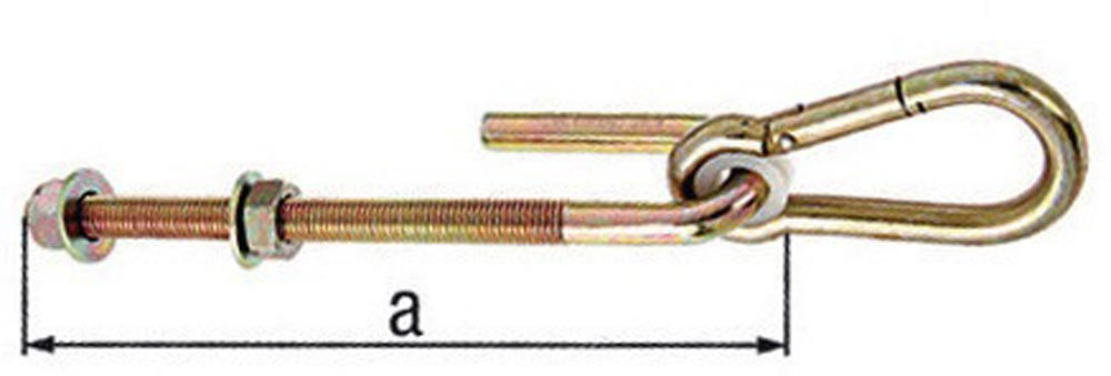 Material: Stahl roh · Oberfläche: galvanisch gelb verzinkt · zum Durchschrauben · Karabinerhaken nicht einzeln erhältlich · Aufgrund von Umstellungen der Oberfläche kann dieser Artikel in unterschiedlichen Ausführungen (gelb-verzinkt, sendzimirverzinkt oder verzinkt-dickschicktpassiviert) geliefert werden.