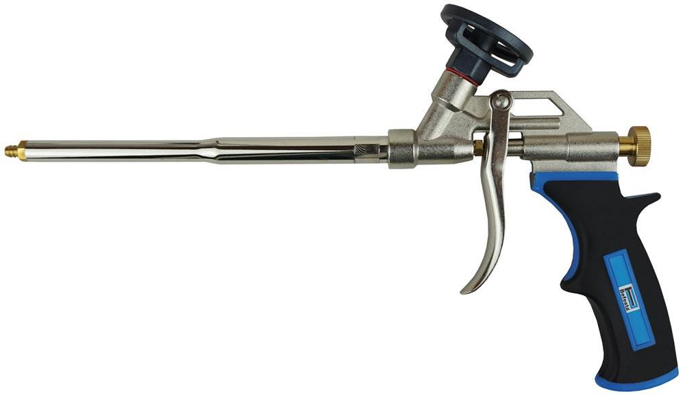 Schaumpistole mit verchromtem Messingrohr und Metallabzug für den Baustelleneinsatz ∙ Dosiernadel und Dosenadapter antihaftbeschichtet ∙ Höhere Stabilität durch abgesetztes Pistolenrohr ∙ Genau und leicht einstellbar ∙ Sehr guter Schaumdurchfluss ∙ 1K-Pistolenschaum Xtra für die Verarbeitung mit Montagepistolen ∙ Geeignet für EnEV DIN 4106-7 ∙ Ausgezeichnete Haftung auf Beton, Putz und Mauerwerk, Holz und vielen Kunststoffen ∙ Inhalt 500 ml mit extrem hoher Ausbeute ∙