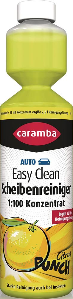 besonders wirkungsvoll - sofort klare Sicht · 1:100 Reinigungskonzentrat · entfernt hartnäckige Verschmutzungen wie Insektenreste, Öle und Fette · hält Wischergummis geschmeidig · ist für Fächerdüse geeignet · greift Lack, Kunststoff und Kunststoffverglasungen nicht an · 25 ml Konzentrat auf 2,5 l Wasser (Mischverhältnis 1:100) · Geruch: Citrus