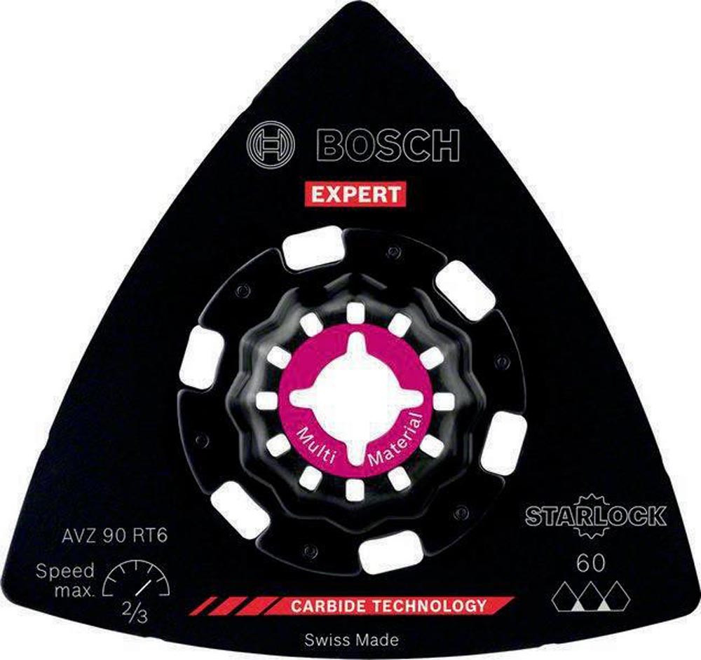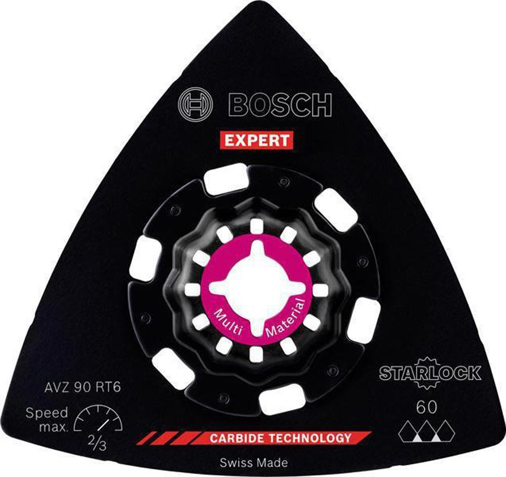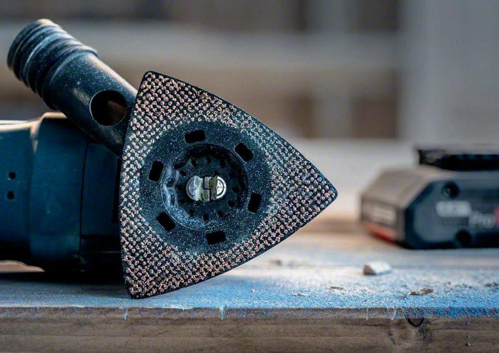 für Multifunktionswerkzeuge · hohe Lebensdauer beim Schleifen von Material verschiedener Art und Anwendungszwecke · mit Bosch Carbide Technology · scharfe Korn mit langer Lebensdauer, da es mit Lösungsmittel gereinigt werden kann · Starlock Aufnahme für maximale Kraftübertragung und bequemen Klingenwechsel