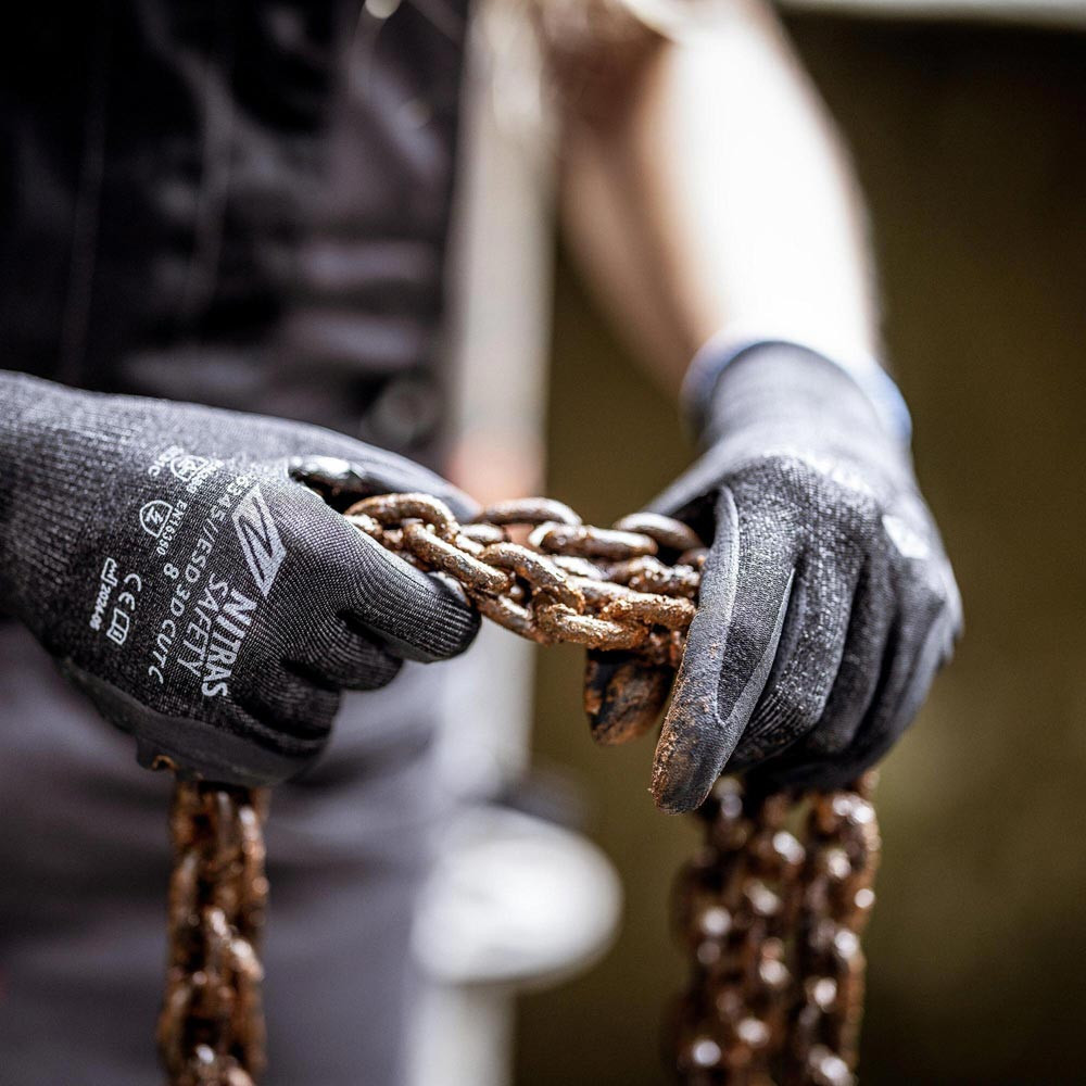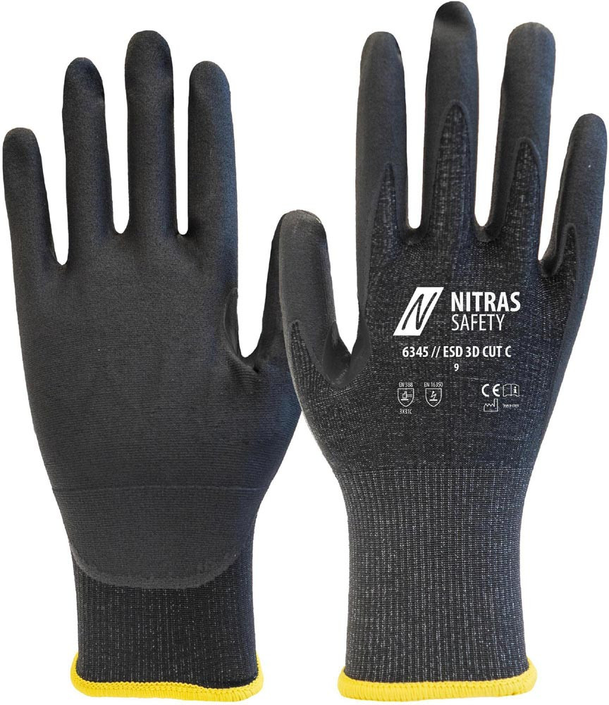 nach EN 388 · EN16350 · Kat. II · Material: Spezialgarn · eingearbeiteter Carbonfaden (18gg) · Nitril-Mikroschaum-Beschichtung · teilbeschichtet auf Innenhand und Fingerkuppen · hohe mechanische Beständigkeit · sehr guter Trocken- und Ölgriff · Schnittschutzlevel C (ANSI A3 CUT) · perfekte Fingerfertigkeit · perfekte und innovative Passform dank 3D FIT · verstärkte Daumenbeuge · touchscreenfähig · waschbar · Premium-Qualität · antistatisch (ableitfähig) · Hautverträglichkeit geprüft (dermatest®) · für Lebensmittelkontakt geeignet · OEKO-TEX STANDARD 100®
