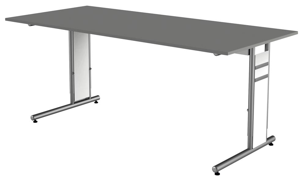 Schreibtisch, BxTxH 1800x800x680-820 mm, C-Fuß-Gestell alusilber, Platte graphit, inkl. Kabelkanal