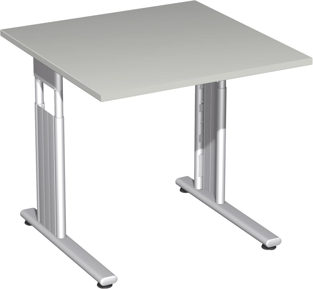 Schreibtisch, BxTxH 800x800x680-820 mm, höhenverstellbar, Platte lichtgrau, C-Fuß-Gestell silber