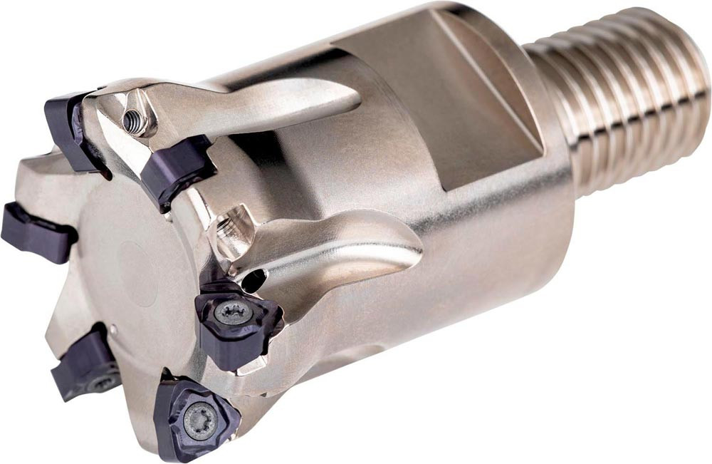 Kopier-Planfräser mit doppelt negativer Geometrie zum spannen von 6 Stück WNHX 0403.. doppelseitigen Wendeschneidplatten · Schnittdurchmesser 35mm mit 93° Anstellwinkel und M16 Gewindeschaft für modulare Standardhalter · 43mm Überstandslänge · Kühlkanalbohrung und ungleiche Teilung zum Planfräsen · Kopierfräsen · flachen Schulterfräsen · tiefen Schulterfräsen · Rampen und Tauchfräsen mit einer maximalen Schnitttiefe von 0.5mm