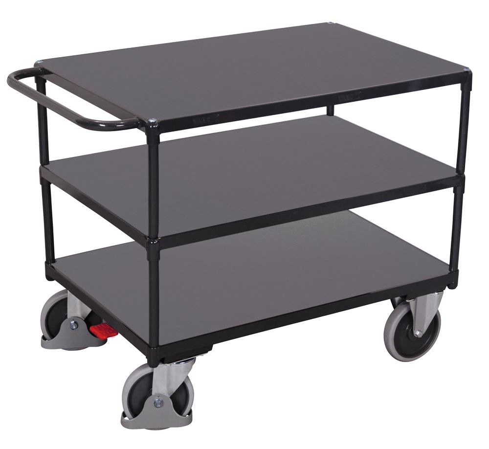 Schwerer Tischwagen, 3 Ladeflächen LxB 850x500 mm, Außenmaße LxBxH 1040x500x880 mm, Traglast 500 kg, RAL 7016 anthrazitgrau E6421326