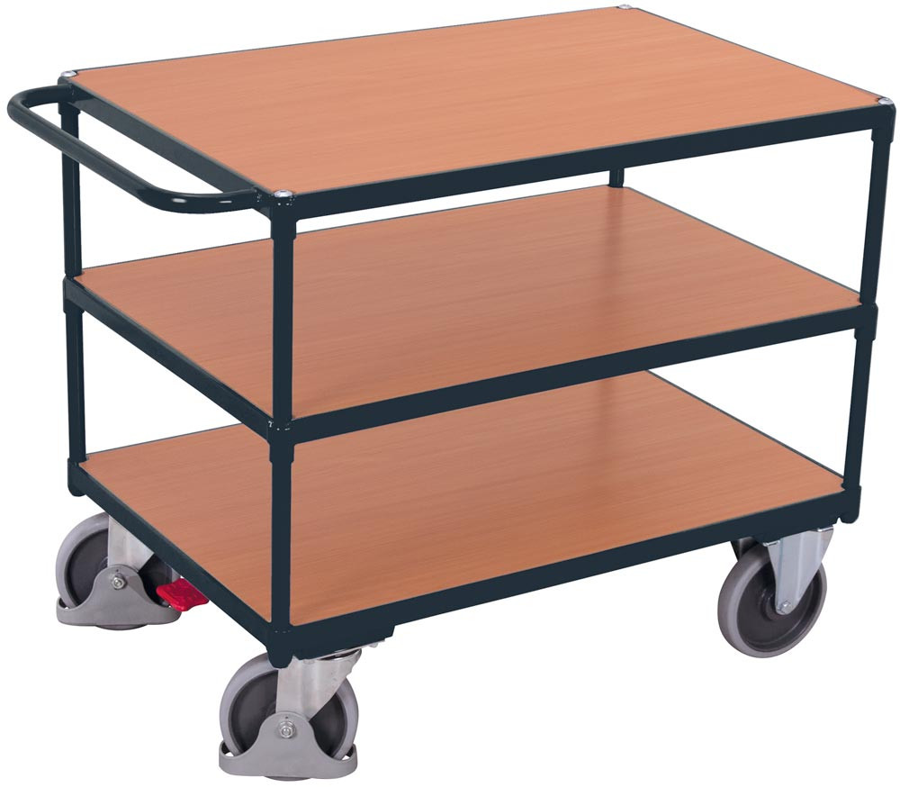 Schwerer Tischwagen, 3 Ladeflächen LxB 850x500 mm, Außenmaße LxBxH 1040x500x880 mm, Traglast 500 kg, RAL 7016 anthrazitgrau E6421326