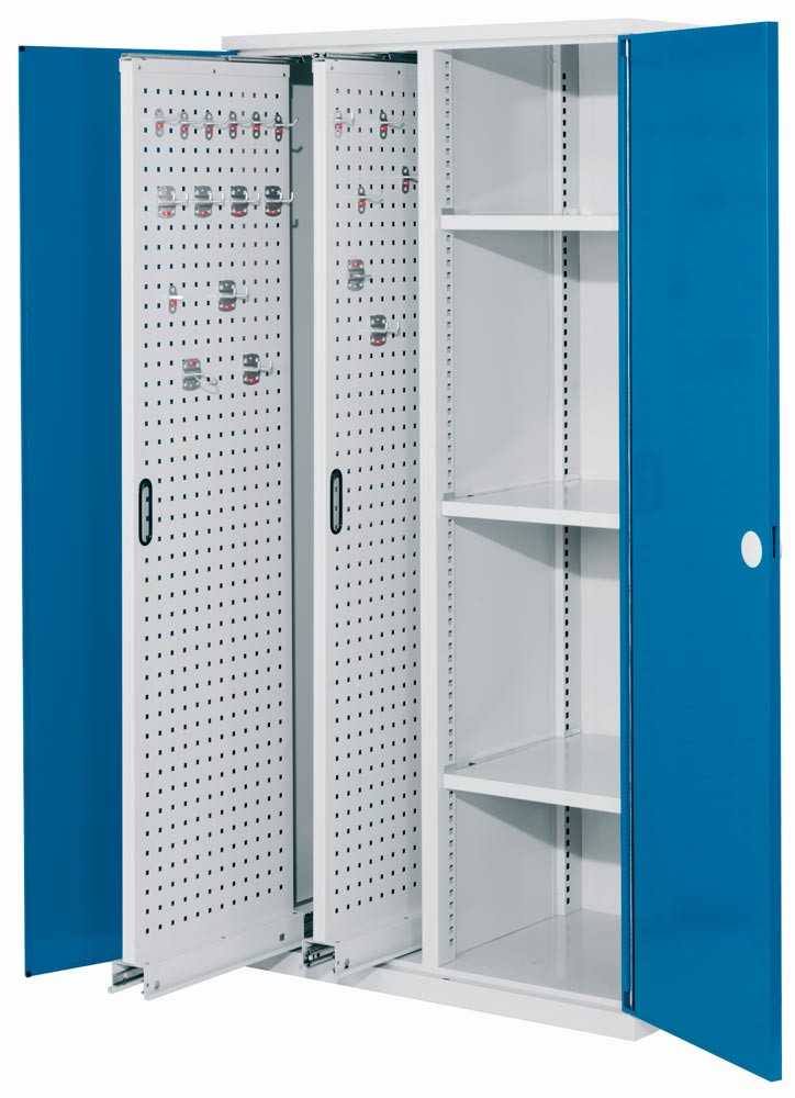 Schwerlastschrank, Vollblechtüren, 4 Vertikalauszüge, BxTxH 1000x600x1950 mm, RAL 7035 E863643