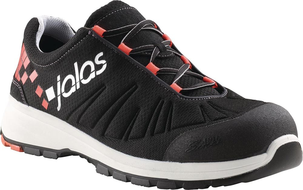 nach DIN EN ISO 20345:2011 · S3 SRC · weicher Sicherheitsschuh mit Textilstrick und Schnürsenkeln · hervorragende Ergonomie · Memory-Schaum-Polsterung und wasserabweisende Eigenschaften sorgen für Sicherheit und Komfort · mit JALAS® Zehenschutzkappe aus Aluminium · plasmabehandelter, textiler Durchtrittschutz und zwei Stoßdämpfungszonen aus PORON® XRD® · die ölbeständige RPU-Laufsohle bietet optimalen Grip, und die belüftete Innensohle hält die Füße kühl
