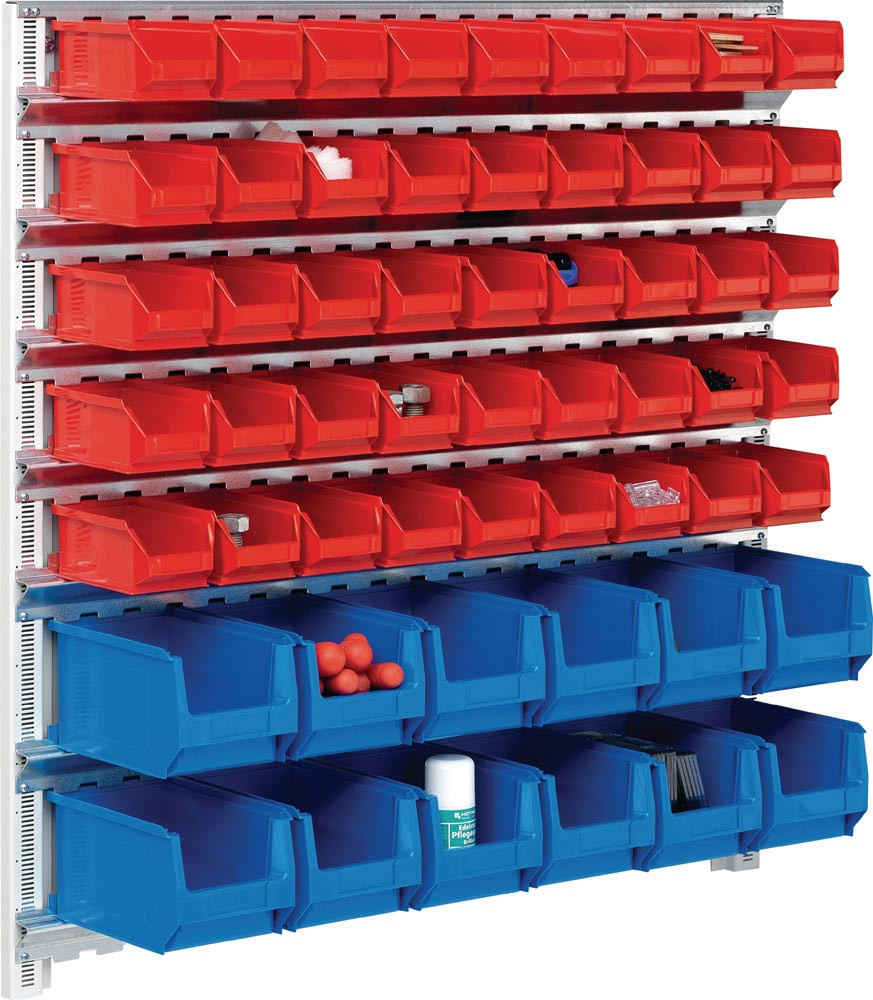 Sichtlagerkastenset H1000xB1010xT255mm Stahl verzinkt mit Sichtlagerkästen 45 x MK5 rot, 12 x MK4 blau