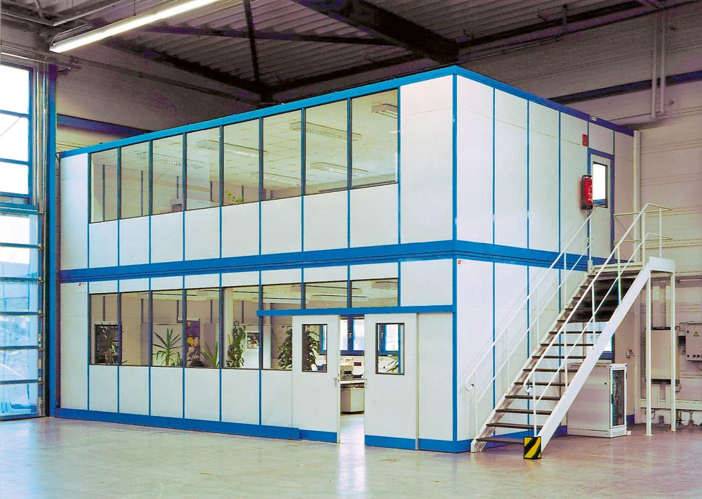 Sichtwandelement, Oberlichtwand, Breite 1000 mm, RAL 9002 grauweiß, Rahmen RAL 5010 enzianblau E861985