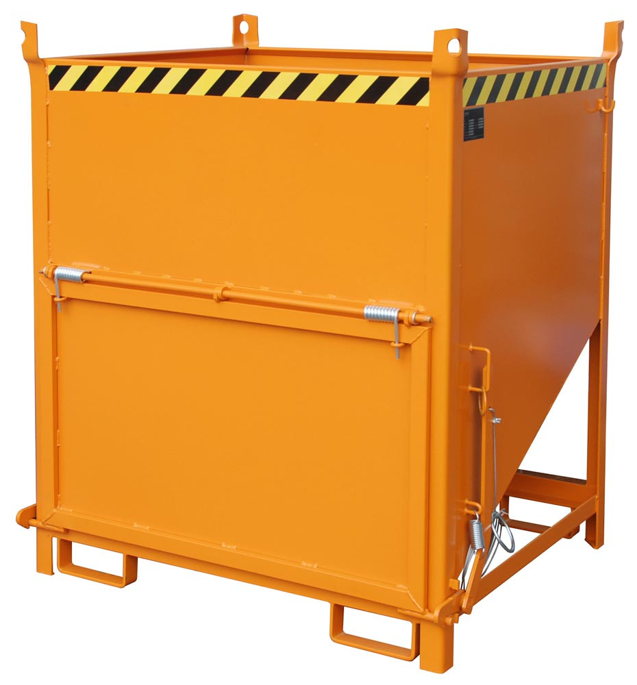 Silobehälter, LxBxH 1000x1200x1405 mm, Vol. 1,0 cbm, Traglast 1500 kg, stirnseitige Klappe, lackiert RAL 2000 gelborange