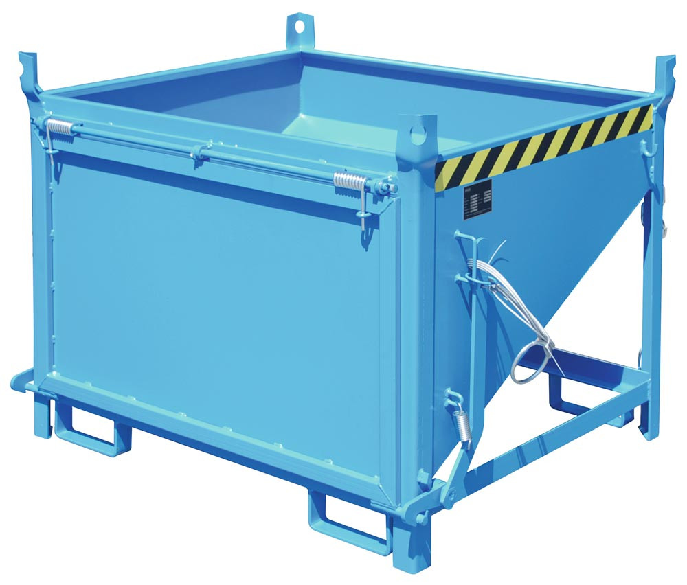 Silobehälter, LxBxH 1000x1200x935 mm, Vol. 0,5 cbm, Traglast 750 kg, stirnseitige Klappe, lackiert RAL 5012 lichtblau