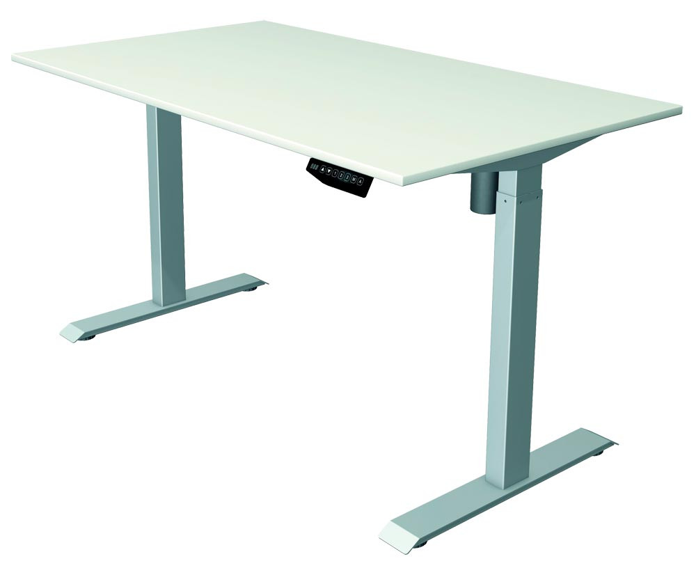 Sitz-/Stehschreibtisch el. höhenverstellbar, BxTxH 1400x800x740-1230 mm, Dekor weiß, Gestell silber