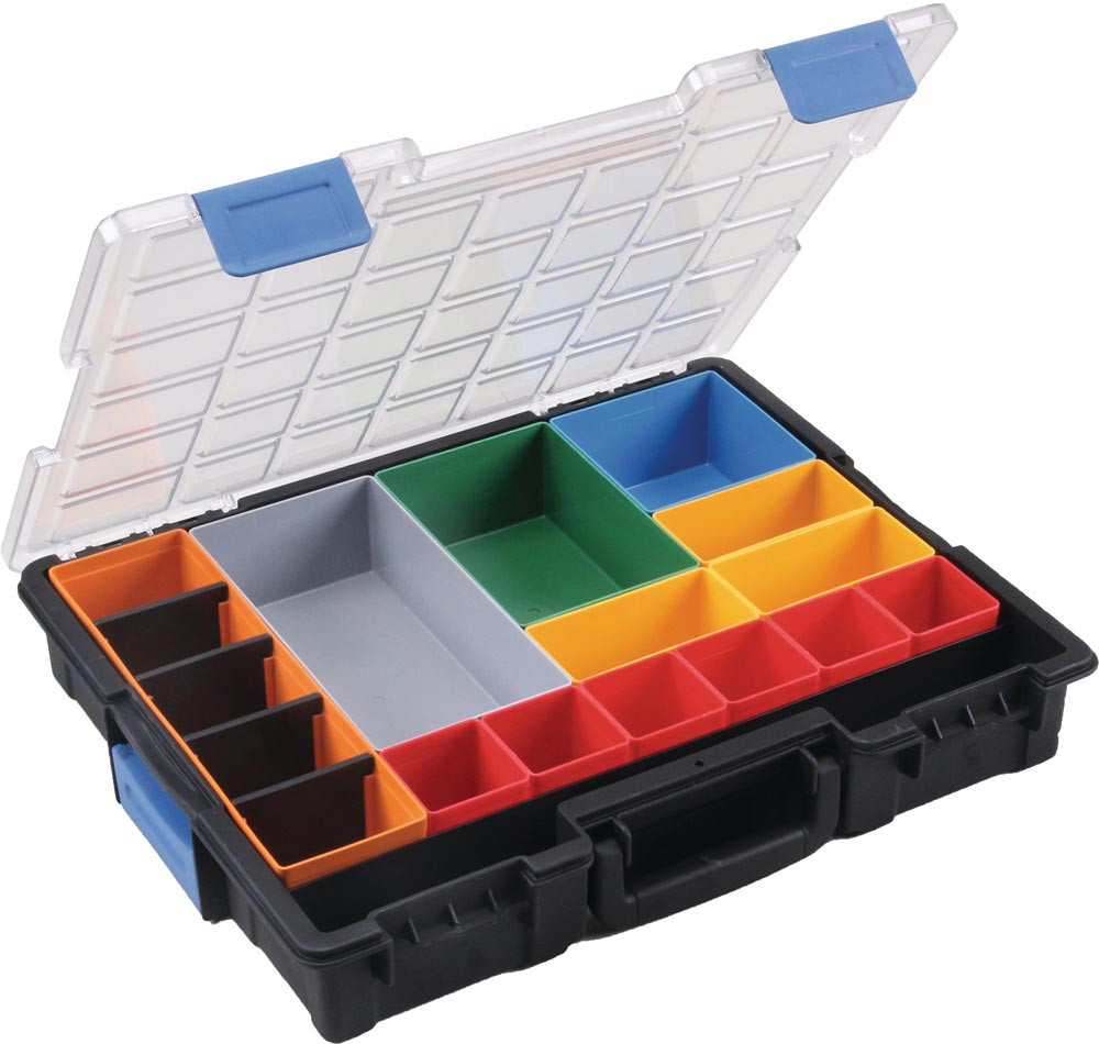 Sortimentskasten Euro Plus Pro B440xT355xH76mm 18 Fächer 4 Trennstege transparent schwarz