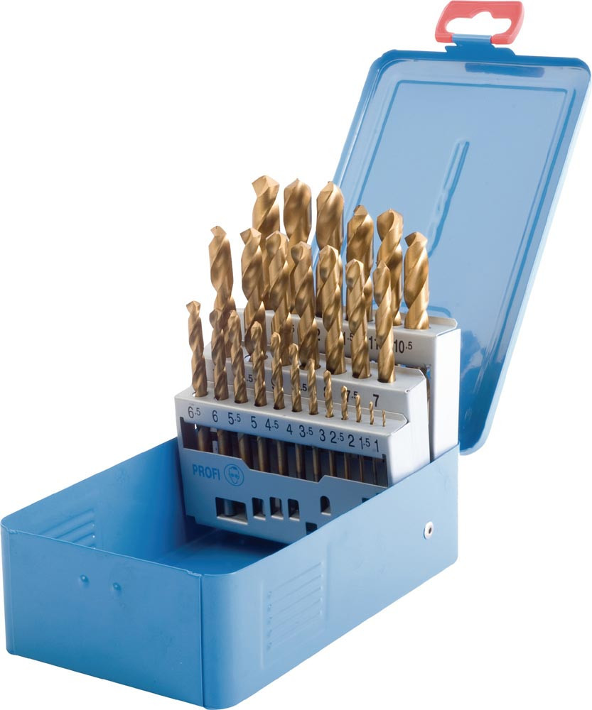 Spiralbohrersatz DIN 338 Typ N Nenn-Ø 1-10x0,5 mm HSS TiN 19 teilig Metallkassette