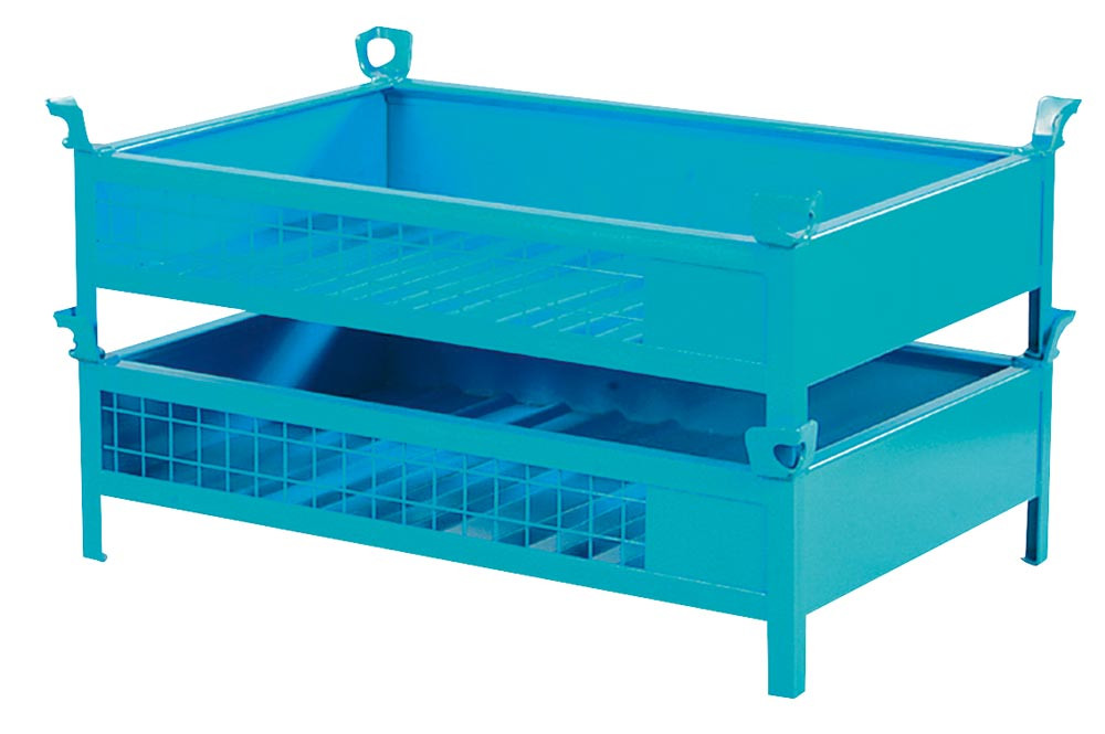 Stapelbehälter, Stahl, Traglast 700 kg, Gitter vorne, Fangecken, LxB 1270x870 mm, Füll-/Stapelhöhe 200/380 mm, verzinkt